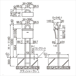 [色]ブラウン [サイズ]H1440mm、W197mm、D90mm [重量]5.6kg [材質]高耐食溶融めっき丸パイプ [仕上げ]粉体塗装