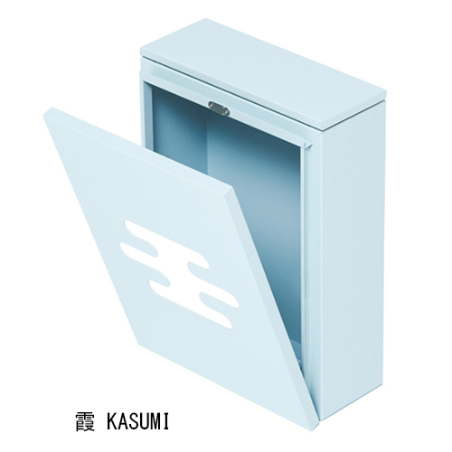 「上入前出」タイプです。 ニッポンのポストには色にも意味があります。 「霞」には、あるかなきかの水の色 瓶覗(かめのぞき) 壁付け専用です。 (壁埋込み不可)取出し扉の開閉は、スライドタイプと前倒しタイプがございます。 シリンダー錠仕様です。上蓋をあけた所にあります。子鍵2本付き。 グッドデザイン賞2015年度受賞 [サイズ]H410mm、W300mm、D145mm [本体重量]4.0kg [付属品]取付ブラケット:サイズ:W100×H200×D25 材質:SUS304 ヘアーライン 重量:0.4kg [材質]本体:高耐食溶融メッキ鋼板(ZAM) 上蓋:SUS430 前面扉: 高耐食溶融亜鉛メッキ鋼板(ZAM)・アクリル板(白) 投入口:AES樹脂(黒) [仕上]ポリエステル 焼付塗装 梨地仕上 ●錠前:シリンダー錠、子鍵2本付き ●ネジ・座金:SUS十字穴付丸木ネジΦ5.1×50:4本 ナイロンアンカー8×40:4本 SUS十字穴付トラス小ネジM4×8:4本 SUS袋ナットM4:4個 SUS平・バネワッシャー4:各4枚 【ご注意】防滴仕様ですが、屋外への設置は強い風雨や諸条件によって雨水が浸入することがあります。連結はできません。ソフトアブソーバーは消耗品です。動きが悪くなりましたら、早めの交換をお勧め致します。(交換用ソフトアブソーバー 価格1,000円/本)