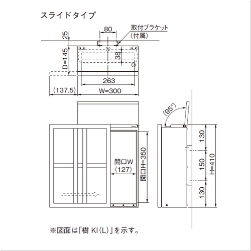 「上入前出」タイプです(左開き)。 ニッポンのポストには色にも意味があります。 「風」には、星凍る厳寒の夜の色 鉄紺(てつこん) 壁付け専用です。 (壁埋込み不可)取出し扉の開閉は、スライドタイプと前倒しタイプがございます。 シリンダー錠仕様です。上蓋をあけた所にあります。子鍵2本付き。 グッドデザイン賞2015年度受賞 [サイズ]H410mm、W300mm、D145mm [本体重量]5.2kg [付属品]取付ブラケット:サイズ:W100×H200×D25 材質:SUS304 ヘアーライン 重量:0.4kg [材質]本体:高耐食溶融亜鉛メッキ鋼板(ZAM) 上蓋:SUS430 前面扉:SUS430・アクリル板(白) 投入口:AES樹脂(黒) [仕上]ポリエステル 焼付塗装 梨地仕上 ●錠前:シリンダー錠、子鍵2本付き ●ネジ・座金:SUS十字穴付丸木ネジΦ5.1×50:4本 ナイロンアンカー8×40:4本 SUS十字穴付トラス小ネジM4×8:4本 SUS袋ナットM4:4個 SUS平・バネワッシャー4:各4枚 【ご注意】防滴仕様ですが、屋外への設置は強い風雨や諸条件によって雨水が浸入することがあります。連結はできません。ソフトアブソーバーは消耗品です。動きが悪くなりましたら、早めの交換をお勧め致します。(交換用ソフトアブソーバー 価格1,000円/本)