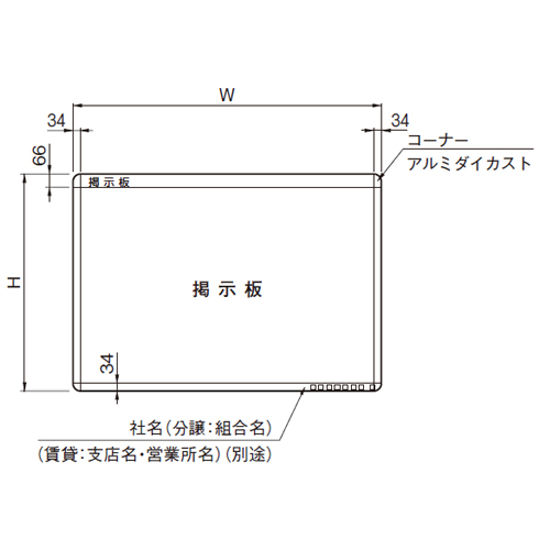 [サイズ]600×900mm [材質](枠)アルミニウム t=1.5mm(掲示板)合板I類 t=3mm+発泡EVA樹脂 t=6mm [仕上](枠)ヘアーラインアルマイト処理(掲示板)ビニールレザー貼(グレー)