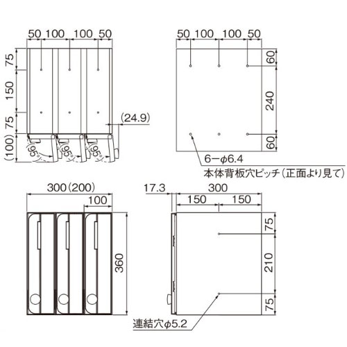 ・郵便物のサイズによって扉を製品設定の全開角度にしないと取り出せない場合があります。設置の際は扉の全開スペースをご配慮ください。 ・標準品はステンレスヘアーラインです。ブラックまたはホワイト、シルバーは受注生産となります。ご希望の場合はご指示ください。