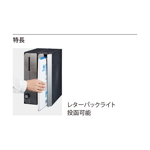 ・タテ型。 ・前入前出タイプの「屋内仕様」です。 ・レターパックライトの投函が可能です。(最大投函可能サイズ:340×260×30mm) ・盗難配慮機構付きです。