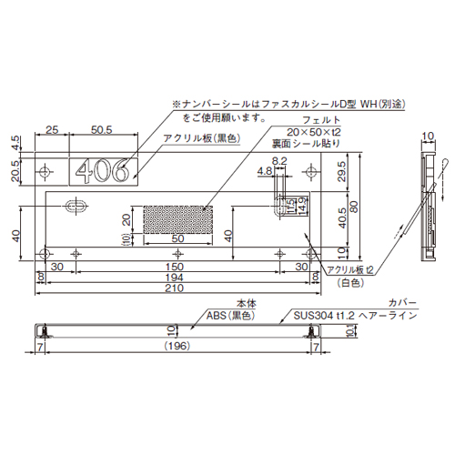 ・部屋番号シールは、ファスカルシールD型の白(文字)で、3桁までの数字・英字をお選びください。(別売) ・部屋番号を貼る黒いプレートは、商品に付属しています。
