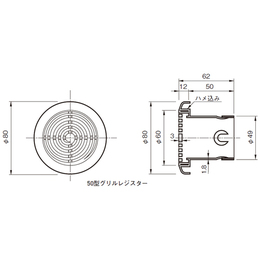 [色]ホワイトグレー [サイズ]筒外径Ф49、外径Ф80 [本体重量]39g [材質]ABS [適用パイプ]SU50 50×54 [有効換気面積]10.4平方センチメートル