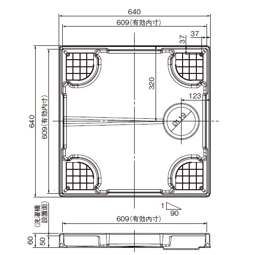 ・大型のドラム式洗濯機から全自動洗濯機まで設置可能。 ・ホース逃げ形状を設け、排水ホースの潰れを解消しました。 ・排水口の穴位置は中央位置です。