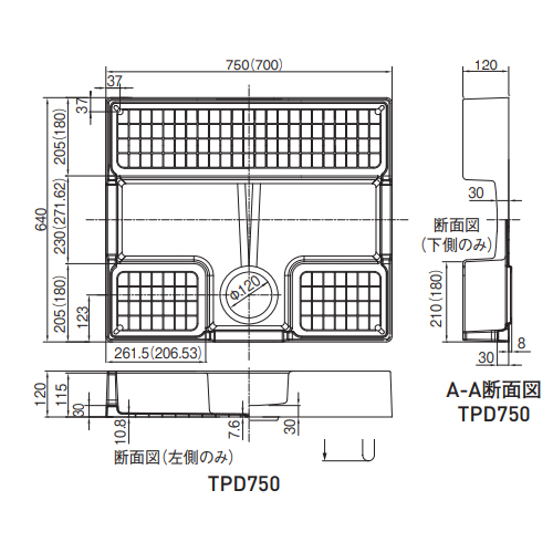 ・本体高さを120mmまでかさ上げし、本体脇を大きく切り欠いた形状(高さ30mm)にしたため、洗濯機を設置したまま排水トラップの脱着や配水管の清掃が行えます。定期的な点検や高圧洗浄ホースを使っての洗浄も楽に行えます。