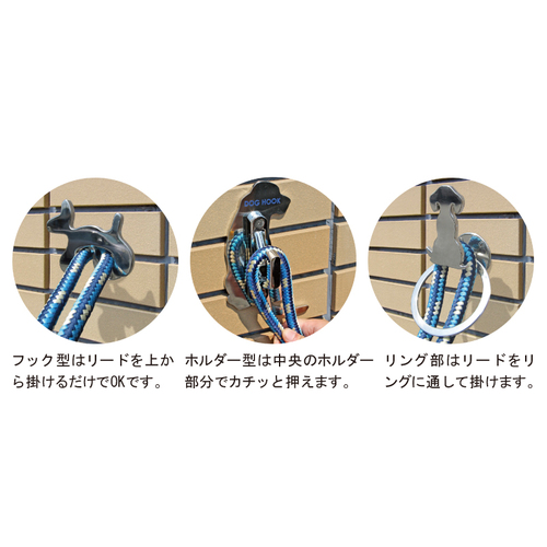 ・ワンタッチで、安全・安心にリード紐をキャッチします。 ・ペット共存住宅の玄関・ベランダ・室内や、ドッグカフェやペットショップの店内で、場所を選ばず簡単に設置が可能な壁掛けタイプのリードフックです。