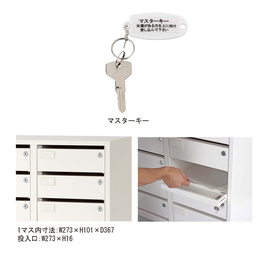 ・各自が個別キーで管理するので受け渡し業務が不要です。(個別キーは各マス毎に2本付)