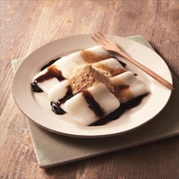 黒みつときなこ、鉄板の組み合わせで女性に人気の一品です。 [名称]もどし水入り乾燥もちセット [原材料]添付もどし水、乾燥もち[澱粉(国内製造)、乳糖、澱粉加工品(でん粉、粉末水あめ)、米粉、粉末酒/トレハロース]、黒みつ[液糖、果糖ぶどう糖液糖、黒砂糖、三温糖、水飴/カラメル色素]、きな粉[砂糖、きなこ、食塩]、(一部に乳成分・大豆を含む) [内容量]148g(水85g×1、乾燥もち8g×6、黒みつ8g×1、きな粉7g×1) [栄養成分](1袋148g当たり) エネルギー223kcal、たんぱく質0.98g、脂質0.77g、炭水化物53.2g、食塩相当量0.04g [アレルギー物質について] 特定原材料:乳 特定原材料に準ずるもの:大豆 [賞味期限]製造より3年間※製造から6ヶ月以内の商品をお届けいたします。 [1袋サイズ]W185×H205 mm 148g [保存方法]直射日光および高温多湿な場所を避けて常温で保存してください。 ※保存年数は製造日より起算しています。