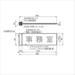 [品番/呼称]TA-248-N [サイズ]H80mm、W260mm、D5mm [重量]170g [材質]取付金具:SUS 304、表示板:アクリル(白乳) [仕上げ]ヘアーライン