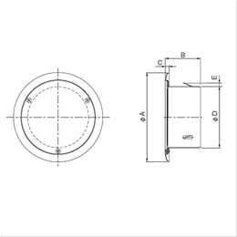 [サイズ]A:141、B:56、C:6、D:97、E:5.5 [重量]141g [材質]SUS304 [仕上げ]粉体塗装+アクリル焼付塗装(メタリックグレー色) [適用パイプ]SU100 100×106