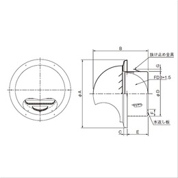・FD付は特定防火設備該当品です。 ・防火ダンパー:公称作動温度72℃ ・取付ダクトは、ねじれ・変形のないこと、また壁仕上り面まで施工されていることを予めご確認ください。 ・本製品を取り付ける前に、必ずダクト内の清掃を行ってください。 ・防水処理に使用するシーリング剤は、施工後の経年劣化によるひび割れなどで隙間を生じさせないためにも、酸化性のものを避け柔軟性を保つものをご使用ください。