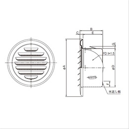 ・FD付は特定防火設備該当品です。 ・防火ダンパー:公称作動温度72℃ ・取付ダクトは、ねじれ・変形のないこと、また壁仕上り面まで施工されていることを予めご確認ください。 ・本製品を取り付ける前に、必ずダクト内の清掃を行ってください。 ・防水処理に使用するシーリング剤は、施工後の経年劣化によるひび割れなどで隙間を生じさせないためにも、酸化性のものを避け柔軟性を保つものをご使用ください。