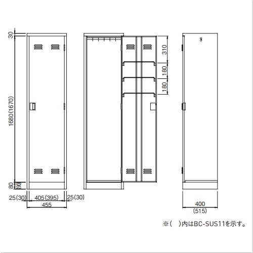 [材質]SUS304 [仕上]ヘアーライン [色]- [サイズ(外寸法)]H1790xW455xD515 t0.7mm [サイズ(内寸法)]H1660xW385xD485mm [重量]24kg [付属部品]ハンガーパイプ1本、S管5本、フック2ケ、 雑巾掛3本、露受皿1枚 転倒防止用L金具2ヶ