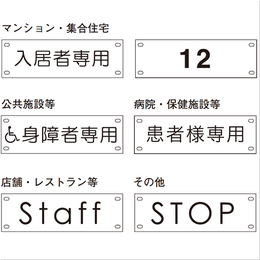 カッティングシート(単品対応 5文字以内) 字体について ・Century Gothic(英数のみ) ・丸ゴシック ・角ゴシック ・規格書体(STOP) ※その他の字体は別途になります。 文字サイズ・文字数について ※下記表に記載の標準文字サイズ・文字 数以外は別途になります。 文字色・プレート色について ※下記表に記載の標準文字色以外の色・反射シールなどは別途になります。 [色]黒・赤・青・緑 [品番/呼称]SS-2 [サイズ]40〜50mm角程度(文字) [材質]カッティングシート [ご注意] ・SS-1、SS-2、SS-3は印刷或いはカッティングシート貼りのみの価格となります。 ・運搬諸経費(梱包費含む)は、別途お問い合わせください。 ※プレートサインのみ(取り替え)でも受注いたします。 また、その他の特注サインにつきましても別途お見積りいたします。 ●備考:単品対応(5文字以内)