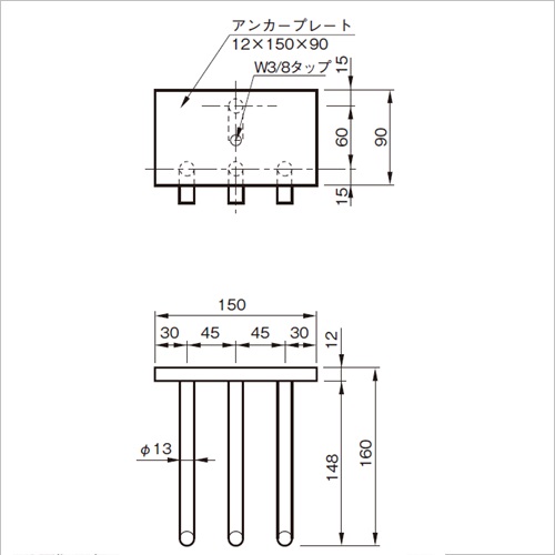・BL標準アンカー(3型プレート溶接タイプ)としてご使用できます。 [サイズ]表記による [重量]1850g [材質]スチール [仕上げ]生地