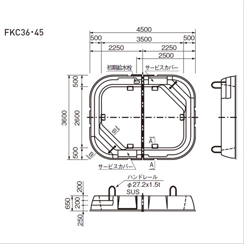 ・FRP仕様のため、錆びたりヒビ割れたりする事がなく、丈夫で衛生的です。 ・パネル組合わせタイプなので組立ても容易です。工期が通常のプールの1/10で済みます。 ・オプションのろ過器ユニットは、ポンプでプール内の水を取り込み循環させ、ヘアーキャッチャーとフィルターでゴミを取り、攪拌する事で水の腐食を防ぎます。(減菌・殺菌能力はありません) [品番/呼称]FKC36・45 [サイズ]3600mm×4500mm [重量]215kg [材質]FRP [ご注意] ・オプションでプールカバーもございます。お問い合わせください。 ・運搬諸経費は別途お問い合わせください。 ・組立、施工も別途承ります。お問い合わせください。 ・納期:受注生産となります。 ●水面積:9.7平方メートル ●水量:4.6t ●水深:0.52m
