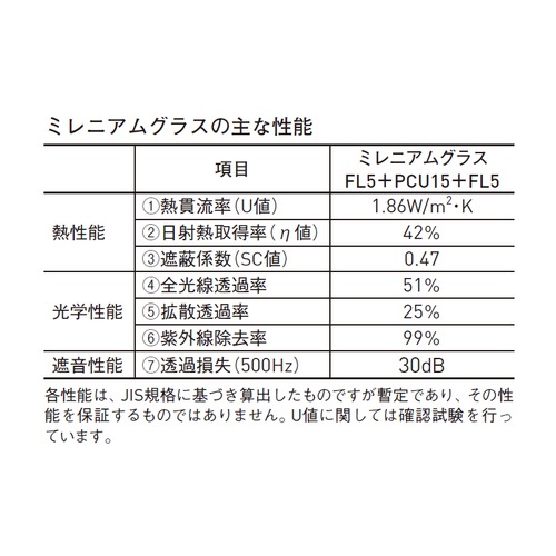 ・衝撃物による貫通性能:落雪などにより万一外部側のガラスが破損した場合でも、完全破壊しにくい構造となっています。