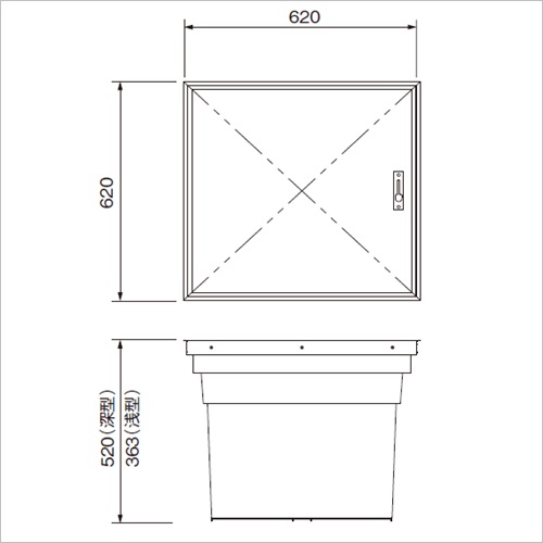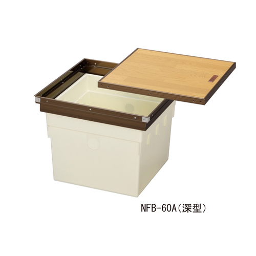 ・床下開口ハッチ600タイプ NFH-60Aに収納庫(樹脂成型品)を加えた商品です。 ・収納庫(樹脂成型品)は容易に取外せ清掃がし易く、収納庫を取外した場合は床下開口ハッチになります。 ・厚天板仕様のため天板裏側の鋼製補強材が不要です。そのため床鳴りやタワミ等が発生しにくい構造になっています。