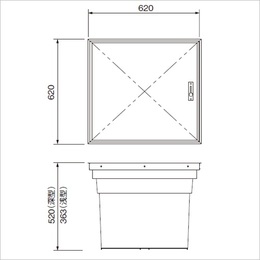[品番/呼称]NFB-60A [サイズ] H520mm、W620mm、D620mm [重量] 9.5kg [開口寸法] W608mm、D608mm [材質] 内装:プリント合板(白)、枠:アルミ(アルマイトブロンズ)、収納庫:ポリプロピレン(樹脂成型品)