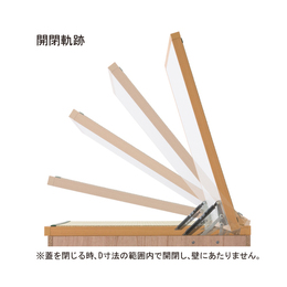 ・壁面に接して設置されていても、天板は壁に当たることなく開閉が可能です。