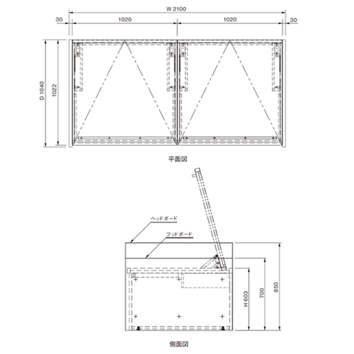 ・2交替勤務用の仮眠ベッドは天板を開けると収納スペースが2つに分かれており2人分の寝具(布団)や荷物を収納することができます。
