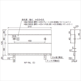 ・名札部は透明塩ビプレート(42×210×0.5)下に、塩ビプレート(42×210×0.5)を重ねて挿入します。 ・破損する恐れがありますので、フックには重量物をかけないでください。 ・名札部の塩ビプレートはライトシルバーの場合グレー、ステンレスカラーの場合つや消し黒となります。 ・部屋番号シールは別途となります。ファスカルシール(D型)を参照ください。