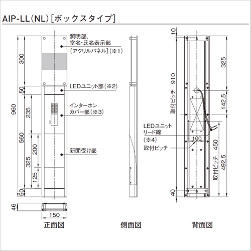 ・ 本体両サイドの縦フレームが2ピースになり、ビスが見えずスッキリしたデザインです。 ・ 施工の簡略化を図り、本体下部を脱着する必要がなくなりました。 ・ 本体の色は、マットシルバー(MS)、ステンカラー(ST)、ブラック(BK)の3色です。 ・ バリエーションは、LED照明(付・なし)×3色×新聞受(ボックスタイプ・ステータイプ)=全12種類です。