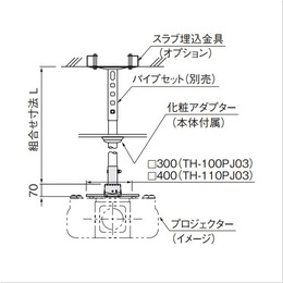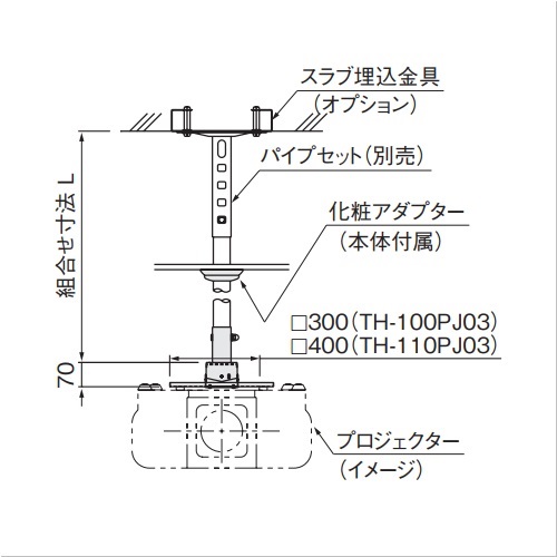 ・パイプセット(TH-PAS)は含んでおりません。別途パイプセットをご注文ください。 ・ご注文の際に取付けるプロジェクターのメーカーと機種名をご連絡ください。取付け穴加工して出荷いたします。