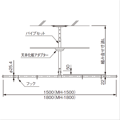 <組み合わせ寸法> ・MH-P050S(249-060):500〜650mm ・MH-P070S(249-061):700〜850mm ・MH-P090S(249-062):900〜1050mm ・MH-P110S(249-063):1100〜1250mm