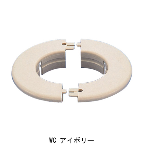ウォールキャップ(WC)貫通スリーブ、外側に使用します。 割形設計のため作業性に優れています。 つめを折ればビス穴になります。 柱または天井際での取り付けができるようにカットラインがついています。 [サイズ]A112mm、B96mm、C(外径)57mm、D(内径)61.5mm [本体重量]25g [材質]ポリプロピレン 【ご注意】接合部や勘合部、貫通部などには必ずコーキング処理やパテ埋めなどを施し、防水処理を行ってください。納期:ご確認ください。入数単位にて受注承ります。