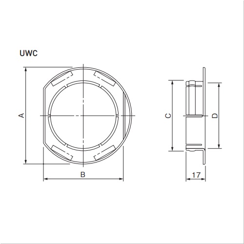 薄型ウォールキャップ(UWC) 貫通スリーブ、部屋内側に使用します。 [サイズ]A85mm、B70mm、C(外径)61.5mm、D(内径)58mm [本体重量]12.5g [材質]ポリエチレン 【ご注意】接合部や勘合部、貫通部などには必ずコーキング処理やパテ埋めなどを施し、防水処理を行ってください。納期:ご確認ください。入数単位にて受注承ります。