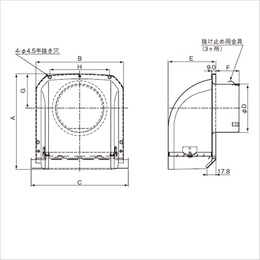・コンパクトでスッキリとしたデザインです。 ・新ガラリ構造と折曲げ付のサイドアップ水切板を採用したことで、排気や雨水による壁面の汚れを低減できます。 ・防虫網は着脱可能です。 [品番/呼称]FY-MFA 043-K [サイズ]A192mm、B177mm、C195mm、D97mm、E96.5mm、F47mm、G69.3mm、H120mm [重量]240g [ご注意] ・材質:アルミニウム、仕上げ:耐食処理仕上げ(クリアコート)、ブラック塗装(-K) ・FD付・防虫網付機種はメンテナンスが出来る位置にて使用してください。 ・防虫網付は油煙を排気する台所等には目づまりする場合がありますので設置を避けてください。 ・FD付の機種は特定防火設備該当品です。 ・防火ダンパー:公称作動温度72℃(FY-MFAA、FY-MGAA)、120℃(FY-MFAB) ●仕様:ガラリ付 ●適用パイプ(呼び径):SU100 100mm×106mm ●有効換気面積:排気:72センチ平方メートル ●有効換気面積:給気:69センチ平方メートル