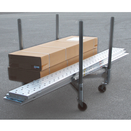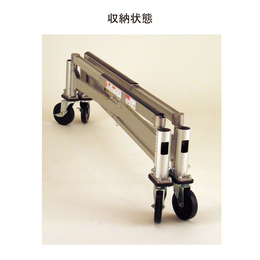 ・CAC-B400(フレームカート本体)のフレームは軽量アルミ合金製です。 ・大型キャスター採用(φ125、ゴム製)ブレーキ2ヶ所付きです。 ・用途によって台のサイズを4段階に調節可能。収納は折りたたんでコンパクトにできます。 ・ハンドルがないので大きなサイズの荷物でも積載可能です。