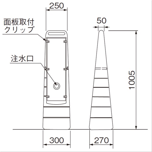 ・本体に水を入れて重しにする安定構造です。