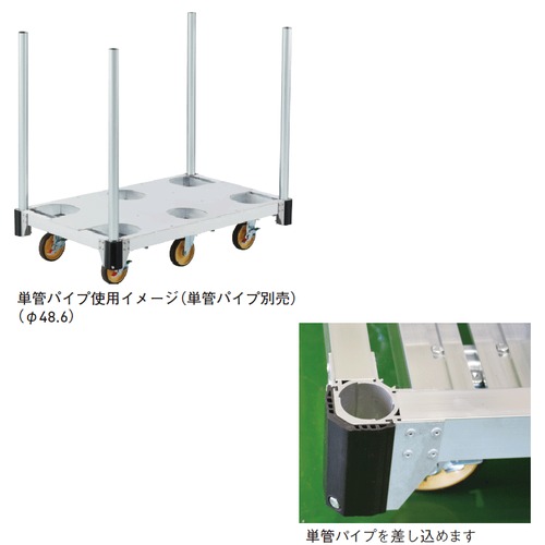 [材質]本体:アルミ、キャスター:ウレタン [荷台幅×長さ]752mm×1202mm [全長]1221mm [全幅]771mm [全高]259mm [重量]21.1kg [キャスター数]4 [最大積載荷重](天板均等荷重時):1000kgf