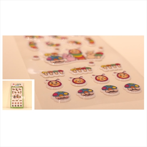 ぷっくり膨らんだ形が可愛い、きむしのぷくぷくシールです。 シールなのでケータイや手帳、ノートなど色々な所に貼って楽しめます。