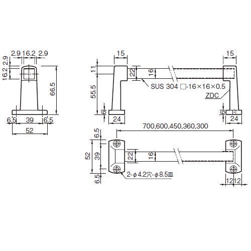[サイズ]表記による [本体重量]257g [付属品]SUS十字穴付丸皿木ネジ 3.8×32:4本 [材質]SUS304・ZDC [仕上]研磨・クロームメッキ