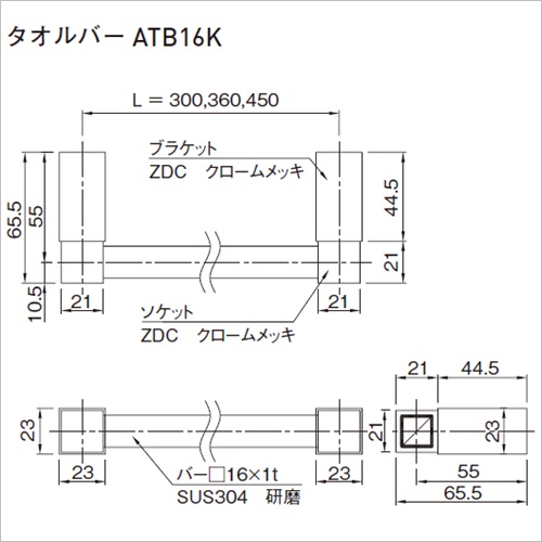 トイレ、洗面所のサニタリーでご使用いただけます。 [サイズ]L300×D65.5×16角 [本体重量]300g [付属品]SUS十字穴付ナベタッピンネジ 4×30:2本 SUS十字穴付皿小ネジ 4×8:2本 [材質]SUS304・ZDC [仕上]研磨・クロームメッキ