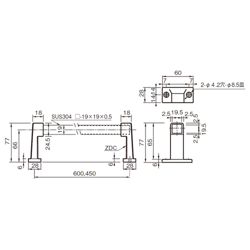 [サイズ]表記による [本体重量]368g [付属品]SUS十字穴付丸皿木ネジ 4.1×38:4本 [材質]SUS304・ZDC [仕上]研磨・クロームメッキ