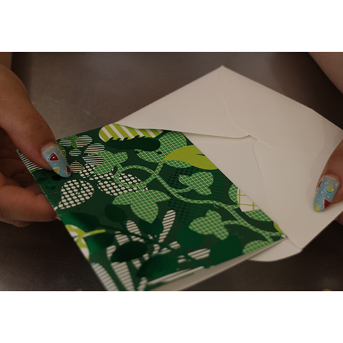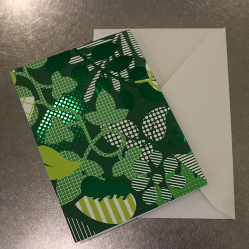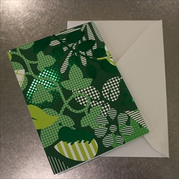 葉っぱが散りばめられた、クラブエスタオリジナルデザインのメッセージカードです。 きれいな箔プリントと、こっそり隠れたきむしがかわいくプレゼントに華を添えます。 セット内容:ギフトカード・封筒 各1枚
