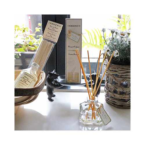 フランスでアロマのトップブランドとして認められているメーカー、Durance(デュランス)。 フレグランスブーケはヨーロッパで幅広く愛用されている 室内用の芳香剤です。 「製品に使用するエッセンス・香料はできる限り自社の畑で有機栽培し、その他の香料も厳選されたものを使用する」というポリシーのもとでつくられています。