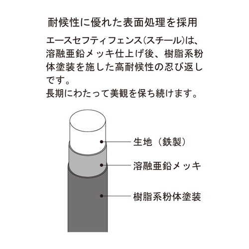 ・取付高さは、1650mm 以上でご使用ください。 ・商品の先端は鋭利な形状になっているため、取付け時及び運搬時に怪我をしないように十分お気をつけください。(納品時はキャップが付いております) ・連結させる場合にM8ボルト・ナット(別途)が必要です。 ・長さ調整で切断した場合には、腐食防止の処置を行ってください。 ・取付アンカー(別途)のサイズはM8です。長さは下地に応じてお選びください。 ・固定用アンカー及びビス、連結用ビス等は別途ご用意ください。