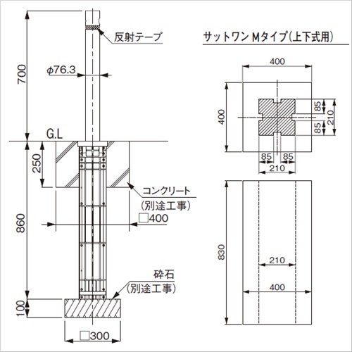 ・内蔵チェーンはステンレス製、2メートルです。ポール本体を2メートルの間隔で設置してください。
