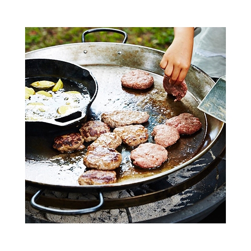 SWINGグリルにぴったりのパエリアパン。 ・大人数のパーティーに、華やかなパエリアのほか、鉄板焼きメニューやバーガーなど、いつものBBQメニューに広がりが生まれます。 [サイズ]外径φ59.5cm(内径φ52.5cm) [重さ]3.24kg [材質]ステンレス スペイン製