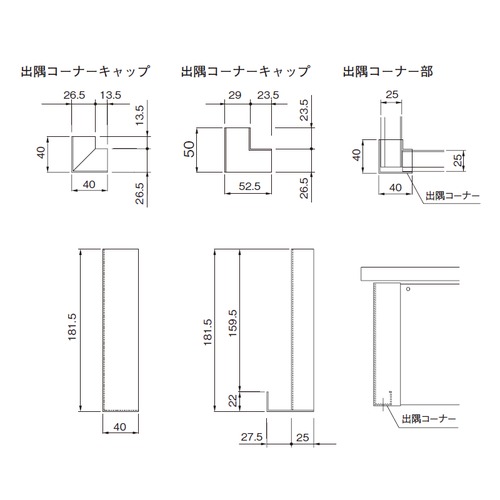 アルミ破風化粧板 ハフパネ 出隅コーナーキャップ H250 2段用 ブラック