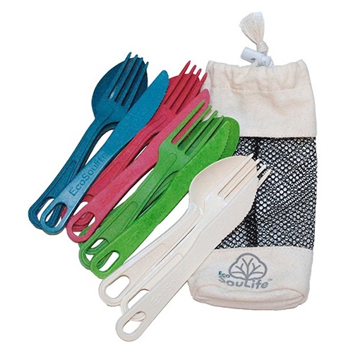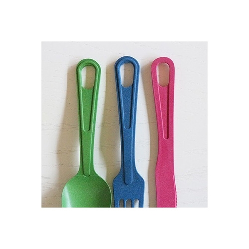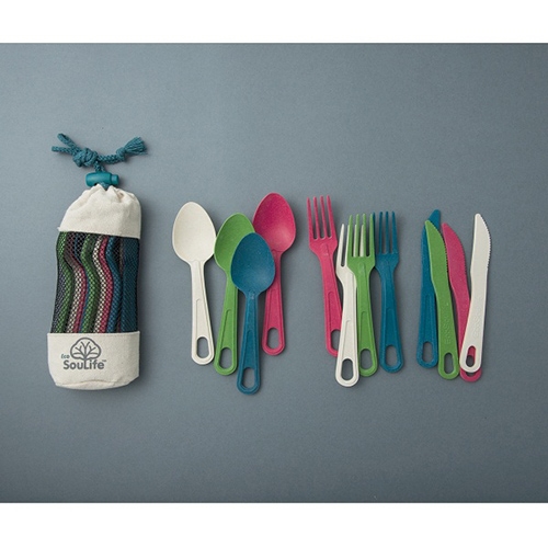・スプーン、フォーク、ナイフの3点セット。 ・どんな料理にも対応できるスタンダードな組み合わせ。 ・自然を感じる質感と、かわいいカラーリングが魅力。 ・安全、安心なのはもちろん、「土に還る」環境にも配慮したエコなアイテム。 ・ナイフ・フォーク・スプーンが4人分、12点がメッシュケースに入ったセット。 ・グリーン、サンド、ピンク、ネイビーの4色のため使い分けにも便利。 ・カトラリーはお尻に穴が開いているため、カラビナなどでスッキリとまとめられるのもポイント。