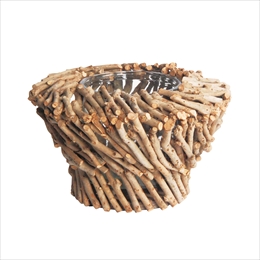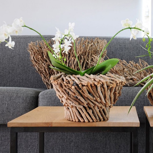 枝の質感とぬくもりをそのままに生かした装飾性の高いデザインで、鉢カバーとして、またフラワーアレンジメントに合わせたりと重宝します。