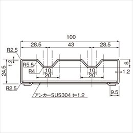[サイズ]厚み1.2mm、L3000mm [本体重量]5.8kg [付属品]戸車 DPM-0452 ※付属戸車個数はレールの長さによります。 [材質]SUS304 [仕上]ヘアーライン ●備考:幅100引違用、戸車 6 個付 【ご注意】レール取付方法:(1)レールを裏返して、モルタルを空間ができないように注意し、十分に流し込んで半乾きになるまで待ってください。(2)レール据付位置に敷モルタルをし、あらかじめモルタルを流し込み湿った状態で定位置へ正確に据付けてください。(3)レール据付の際には水平を必ずとって、ていねいに行ってください。レールの据付け以前に裏面にモルタルを充填しておき、正確に取付けてください。木製堅枠との組合わせ方法は、ご要求により異なりますので、設計上の長さ寸法が決定してから指示してください。