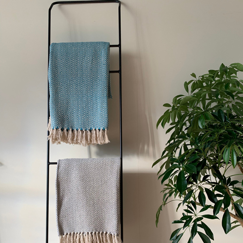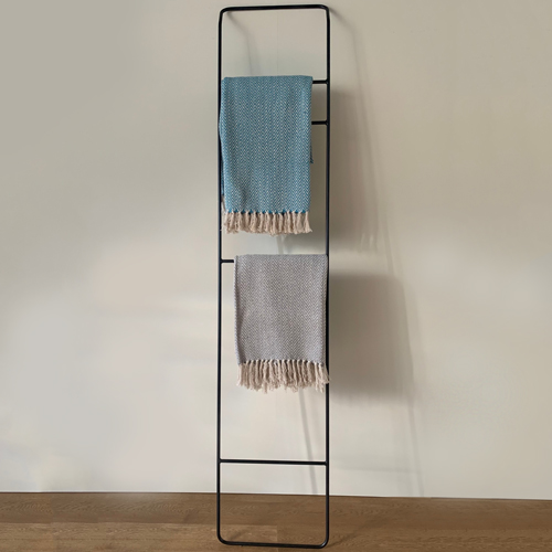 壁に立てかけて使う、シンプルでスタイリッシュなタオルラックです。